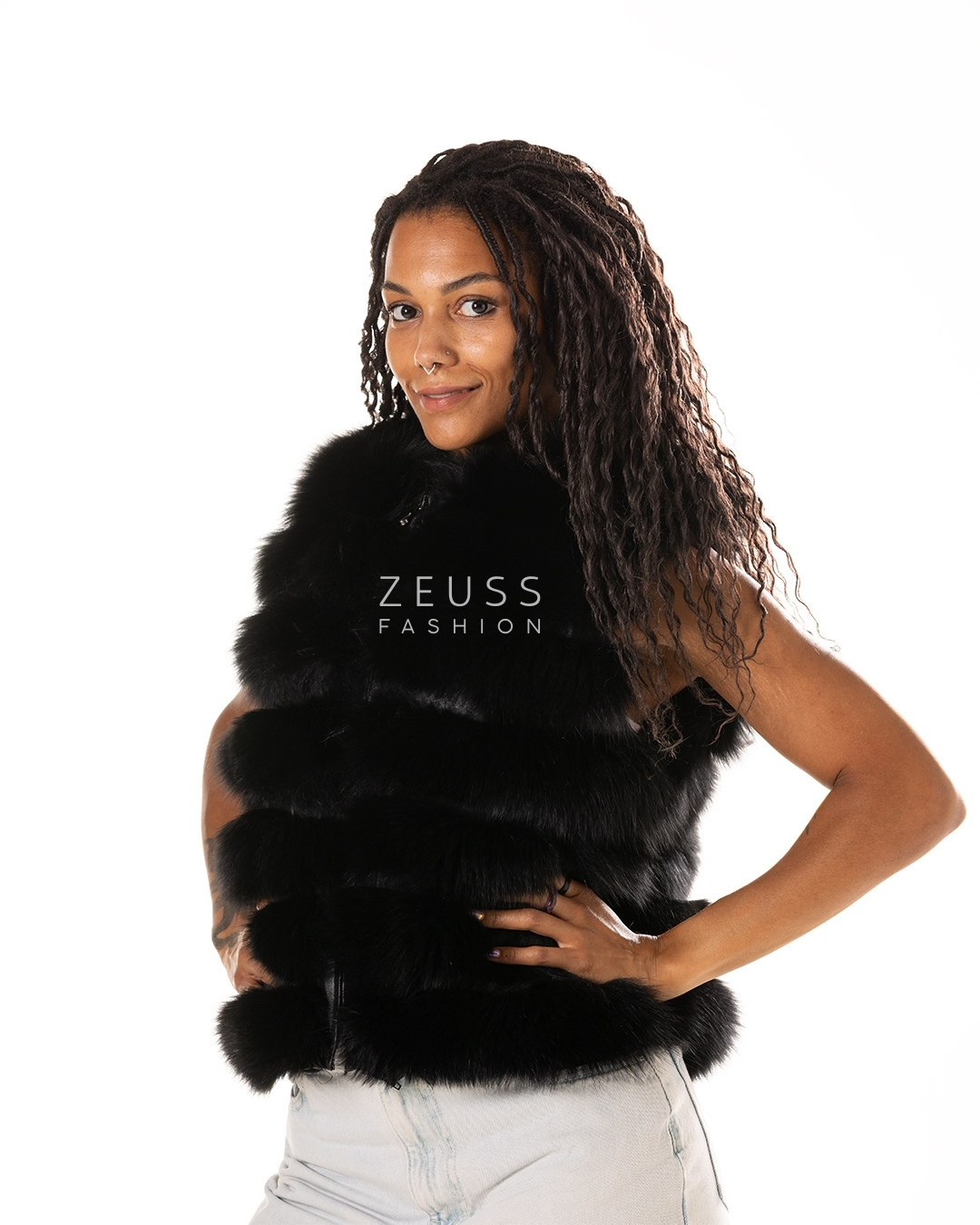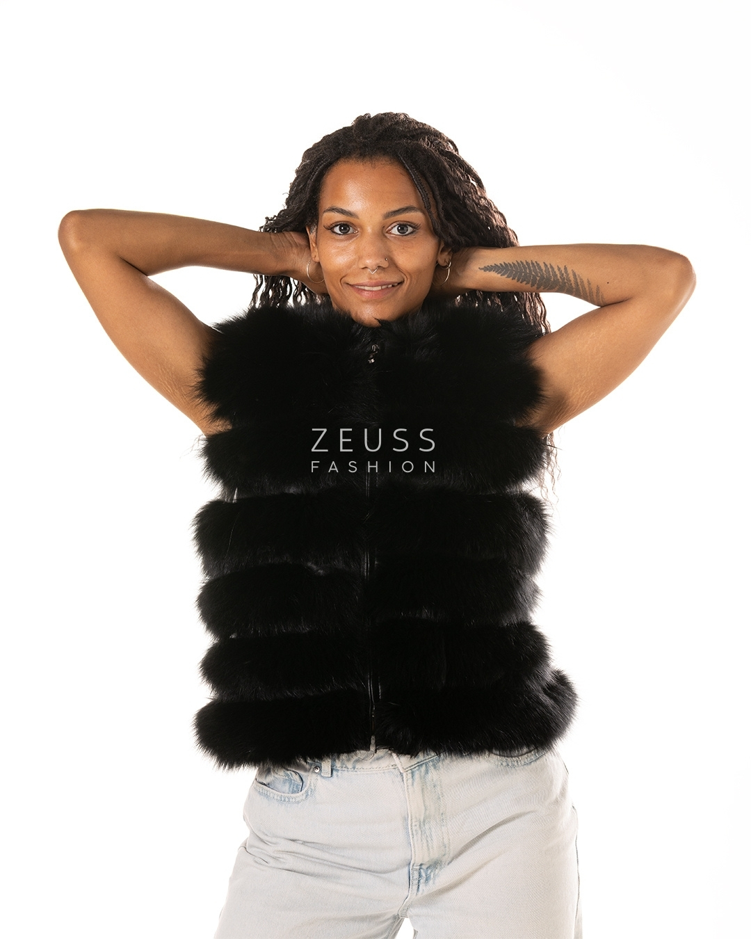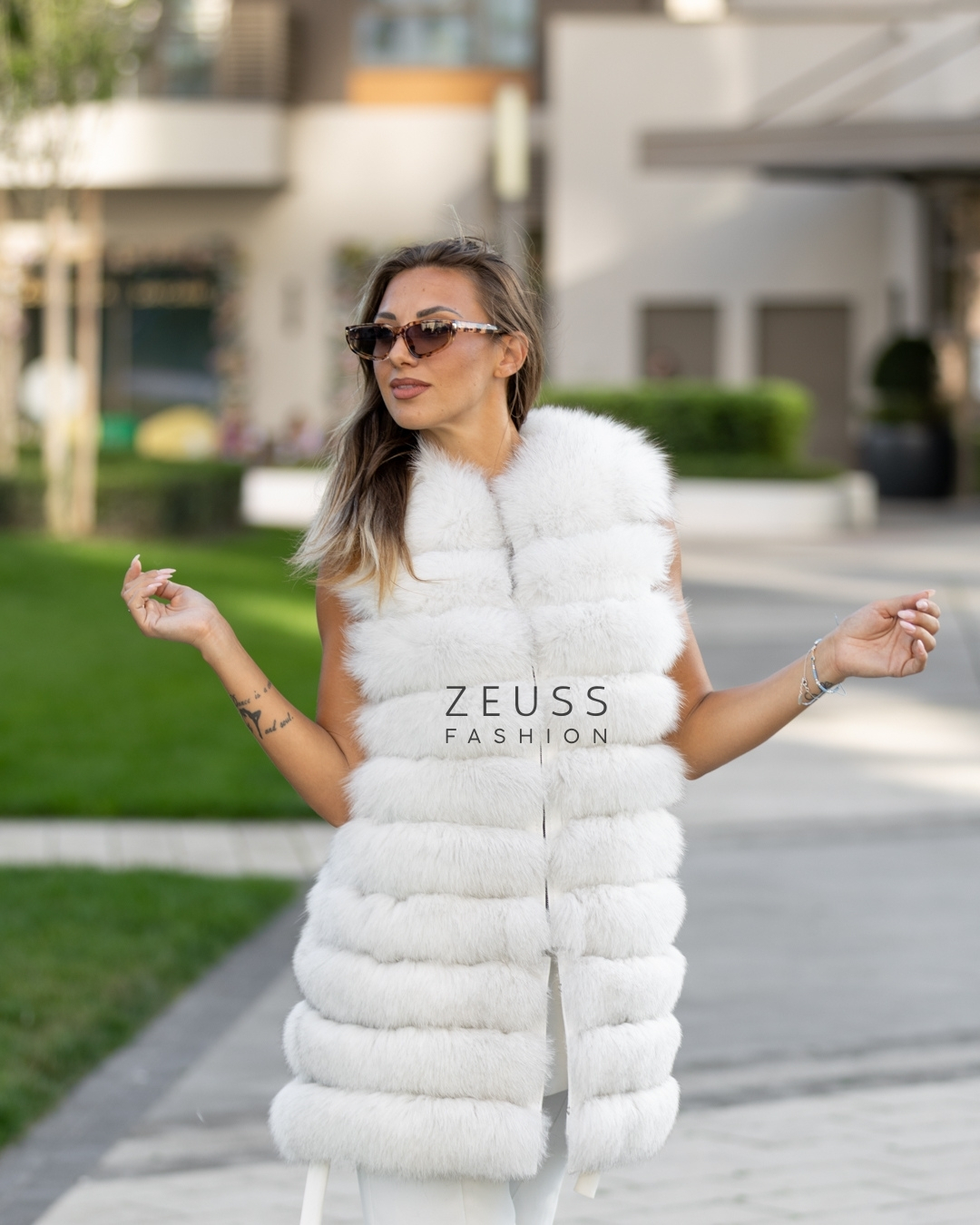 Ekskluzivna bunda od prirodnog krzna 6 u 1 – nosi se kao duga ili kratka bunda, prsluk ili sa različitim dužinama rukava. Dostupna u crnoj i beloj boji.