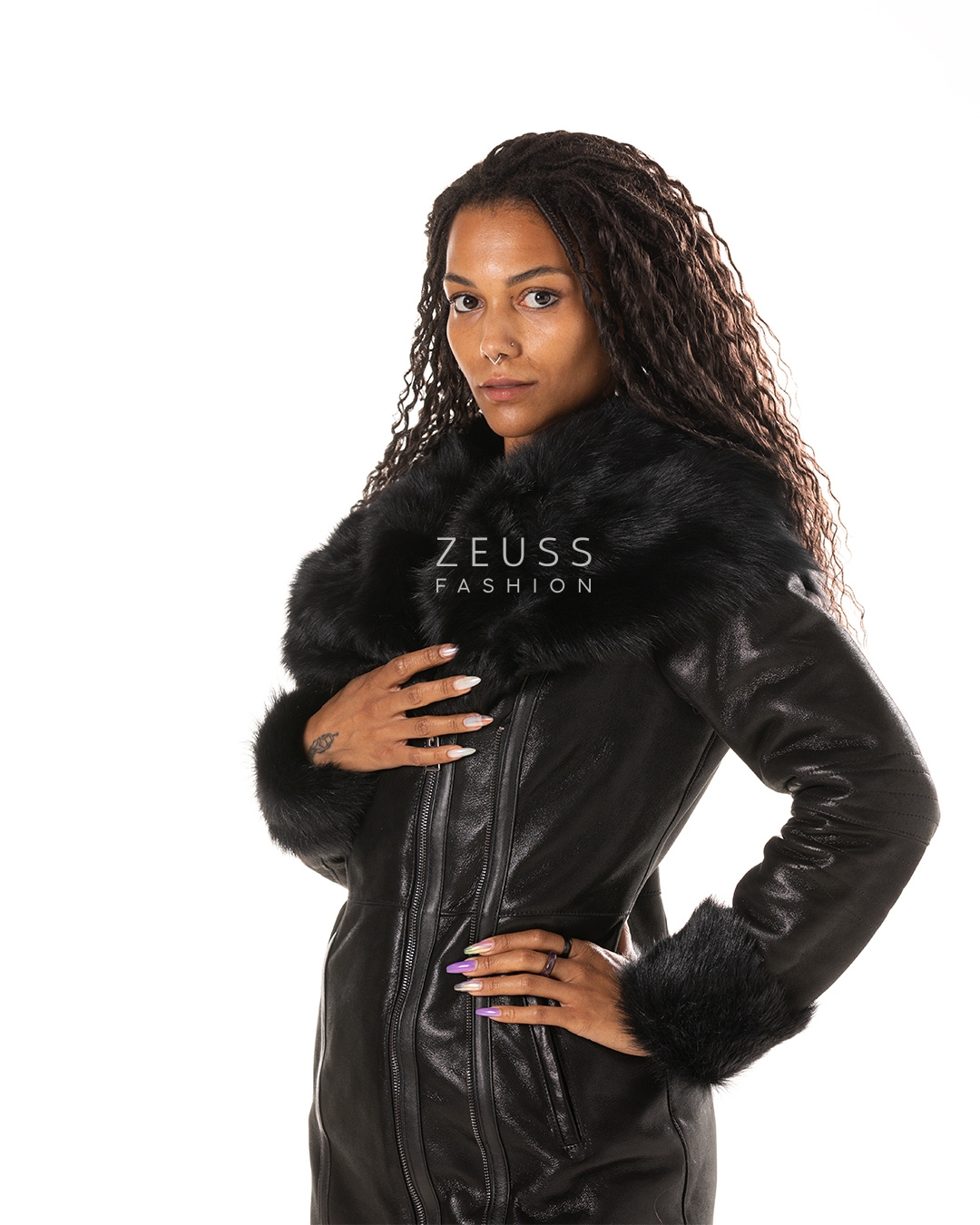 Izrađen od vrhunske prirodne kože, sa bogatim detaljem prirodnog krzna na okovratniku, ovaj monton pruža toplinu, udobnost i prepoznatljivu dozu luksuza.