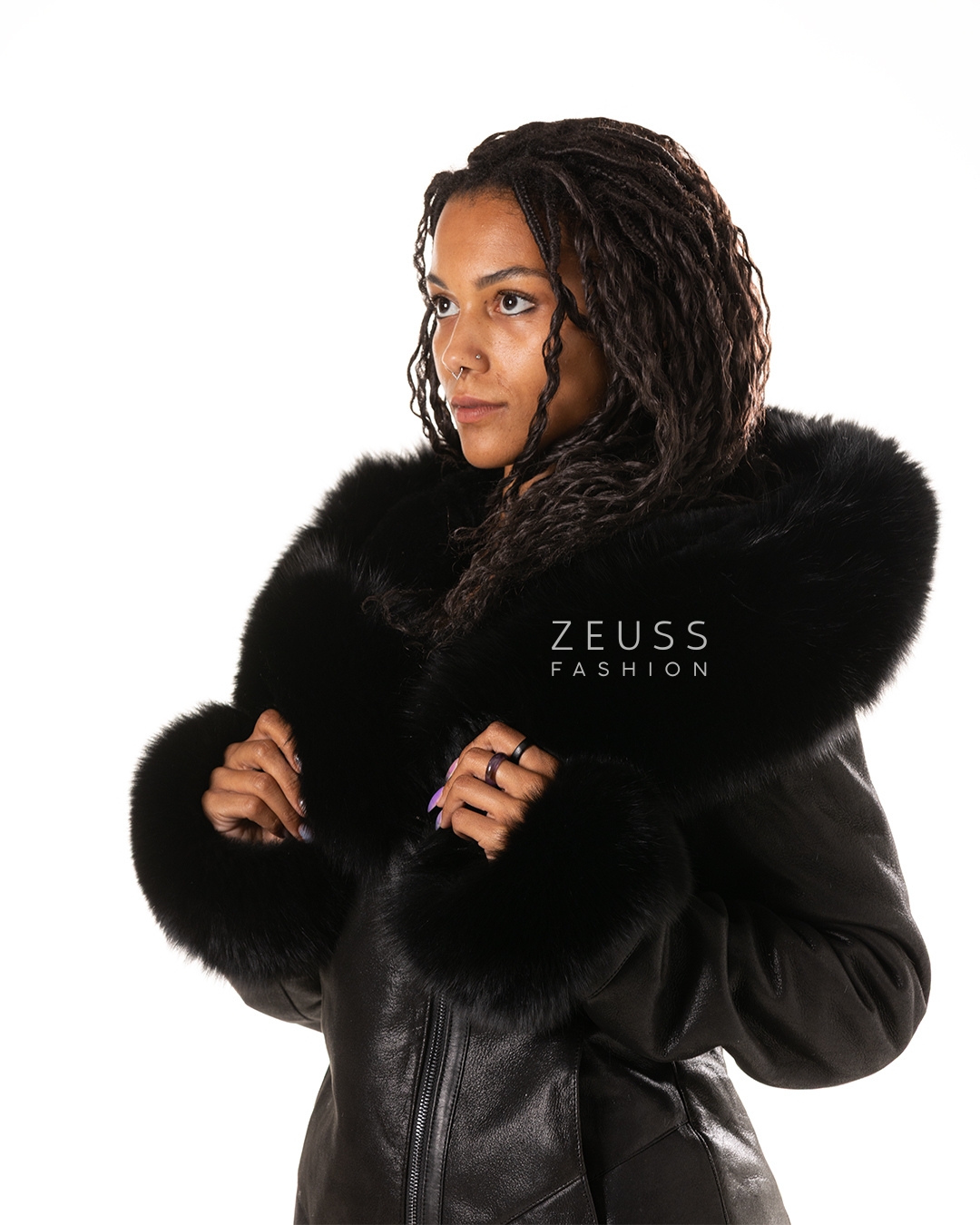 Duži monton sa prirodnim krznom na okovratniku i rukavima. Dostupan u crnoj boji – elegancija, toplina i zaštita u jednom komadu.