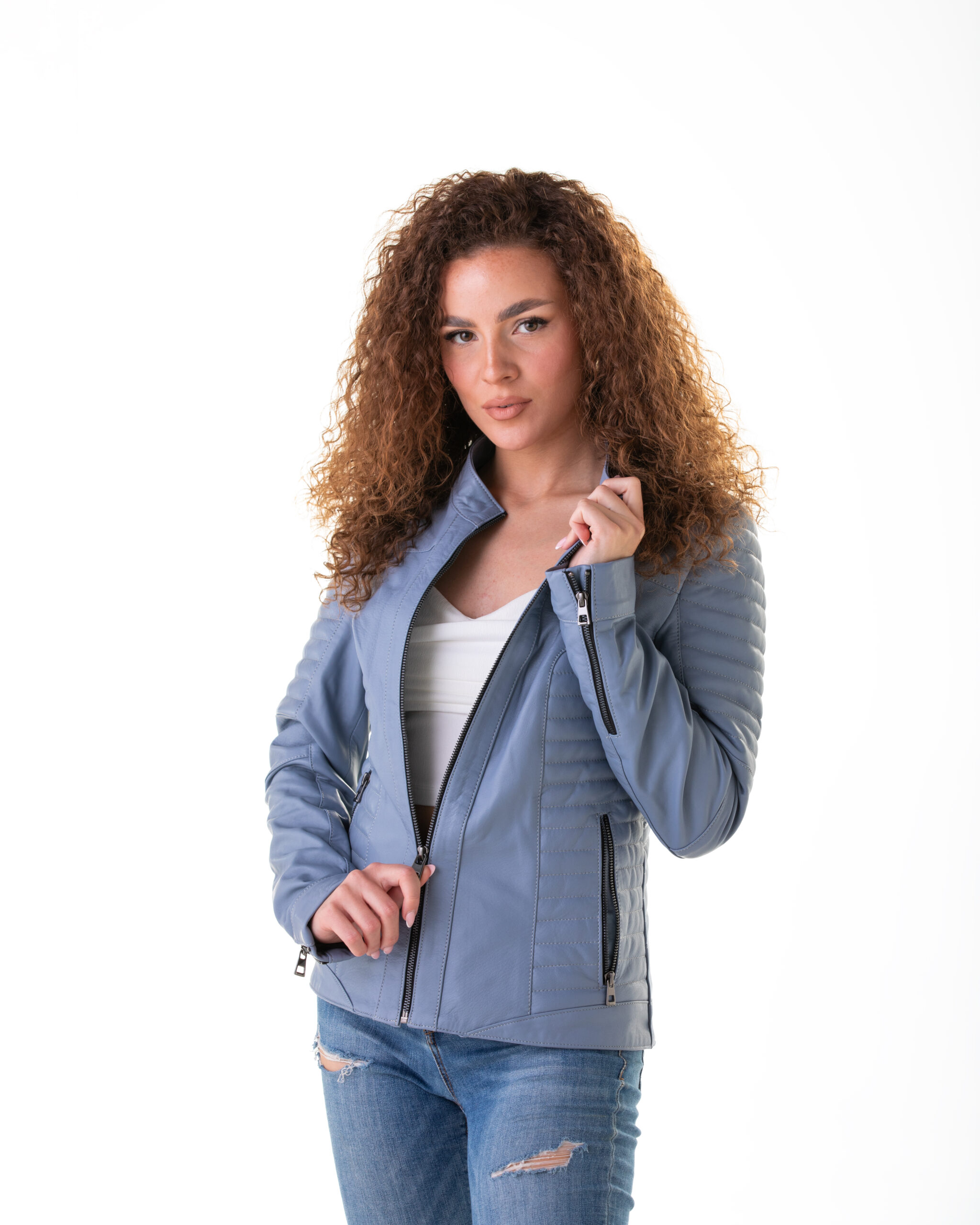 Predstavljamo vam Toskana Blue – prepoznatljivi model ženske jakne od vrhunske jagnjeće kože, sada u upečatljivoj nežno plavoj boji.